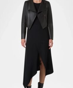 Crafted from premium lambskin leather, this jacket offers a soft, smooth texture with a naturally rich finish. Moreover, lambskin is known for its lightweight feel and exceptional durability, making it both comfortable and long-lasting. The deep black color further enhances its sleek appearance, while also making it incredibly versatile for everyday styling.