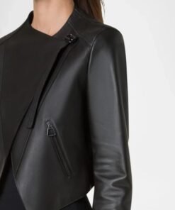 Black Lambskin Biker Style Jacket For Women’s