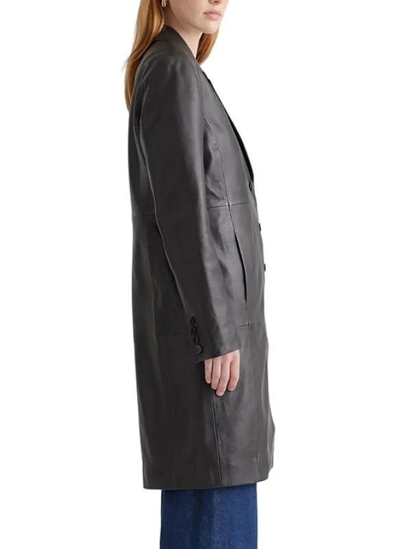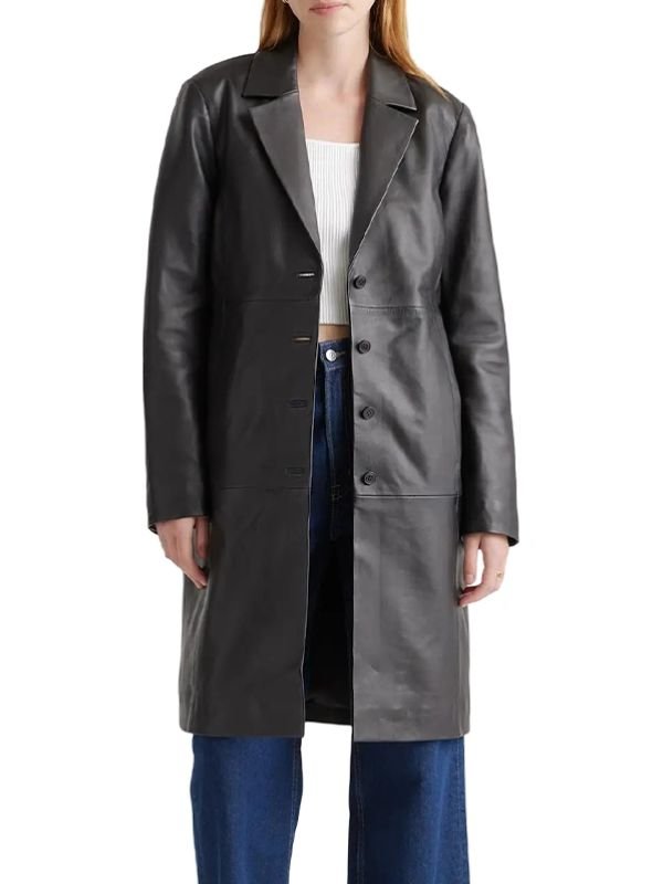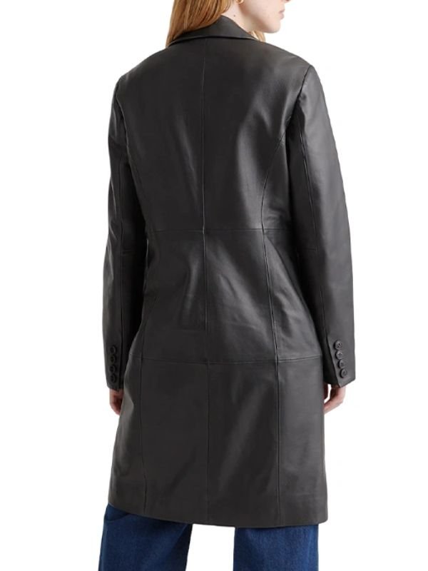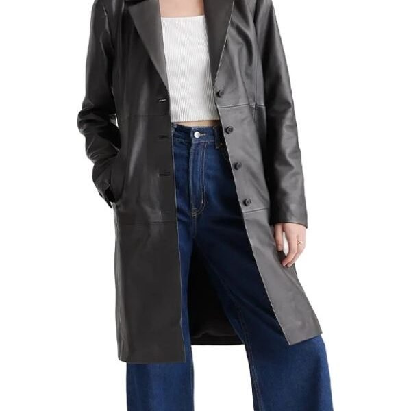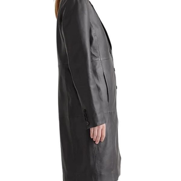 Overall, the Black Leather Long Buttoned Trench Coat for Women combines structure, comfort, and classic trench elegance. It is an ideal choice for women who want a powerful yet refined outerwear statement.
