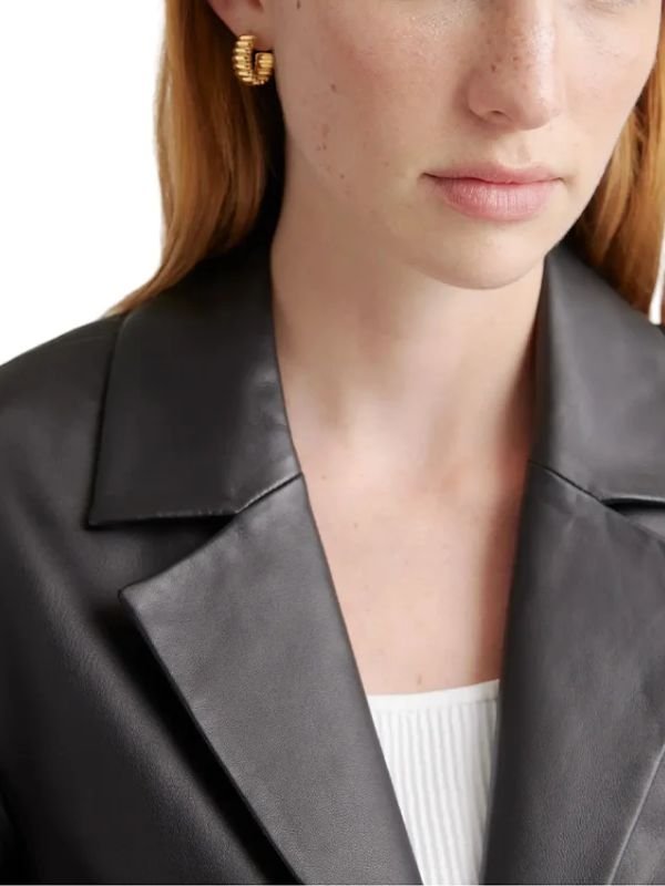 This black leather trench coat pairs effortlessly with dresses, trousers, or boots. You can wear it over office attire for a professional look. It also works beautifully for evening outings or formal events. Therefore, it transitions smoothly from day to night.