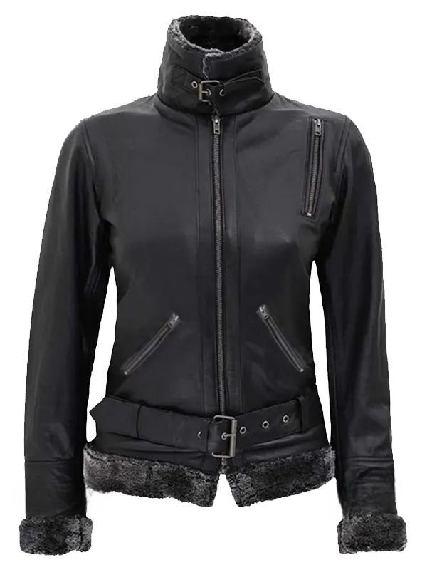 Overall, the Women’s Black Leather Shearling Belted Closure Jacket combines warmth, durability, and classic leather fashion. It is an ideal choice for women who want to stay cozy while looking confident, polished, and effortlessly stylish throughout the winter season.