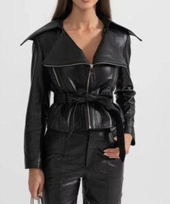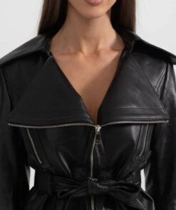 Overall, the Black Wide Lapel Leather Jacket with Belted Waist for Women’s merges modern fashion with classic leather craftsmanship. It offers a bold yet versatile style that transitions smoothly from day to night. With its flattering fit, premium materials, and standout design details, this jacket is a must-have for women seeking both flair and practicality in outerwear.