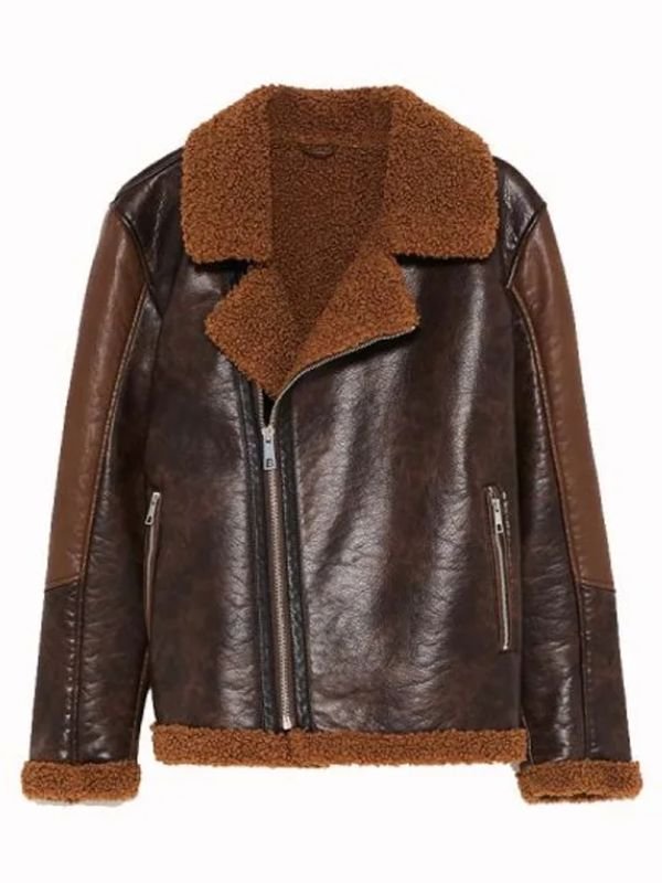 Comfort is a major focus in this shearling jacket. The soft shearling lining provides excellent insulation against cold weather, keeping you warm without adding bulk. The plush shearling collar frames the neckline and adds an extra layer of protection from wind and cold. In addition, the interior lining feels smooth against the skin, allowing you to wear it for long hours with ease. Full-length sleeves offer complete coverage, while the structured yet relaxed fit supports natural movement.