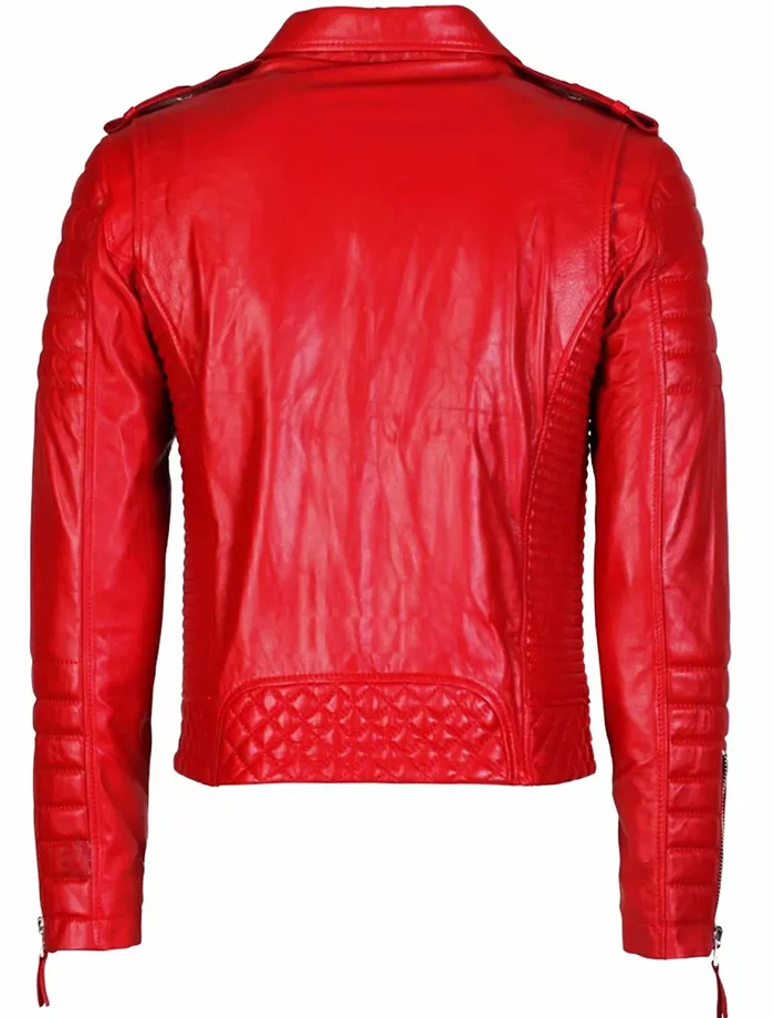 Classic Red Leather Motorcycle Jacket Zipper Style