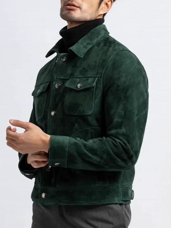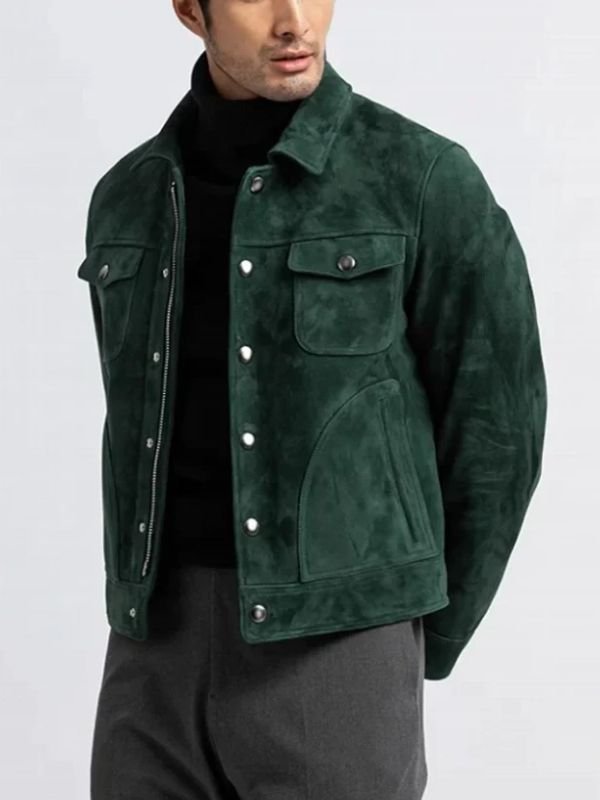 Durability adds long-term value to this jacket. The high-quality suede exterior resists wear while developing character with age. Over time, the texture grows richer and more distinct, giving the jacket a personalized look. The rich green shade pairs easily with neutral tones like black, grey, and denim, offering versatile styling options for different occasions.