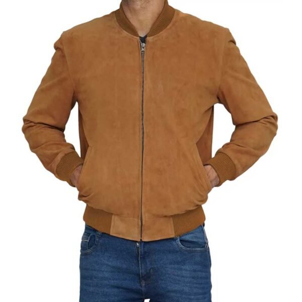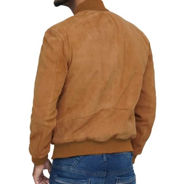 Durability also defines the appeal of this bomber jacket. High-quality suede resists wear when cared for properly and maintains its elegant appearance over time. Consequently, the jacket develops a richer look that enhances its character. The careful stitching and structured shape help retain its form, even with regular use. Each detail reflects quality craftsmanship and thoughtful design.