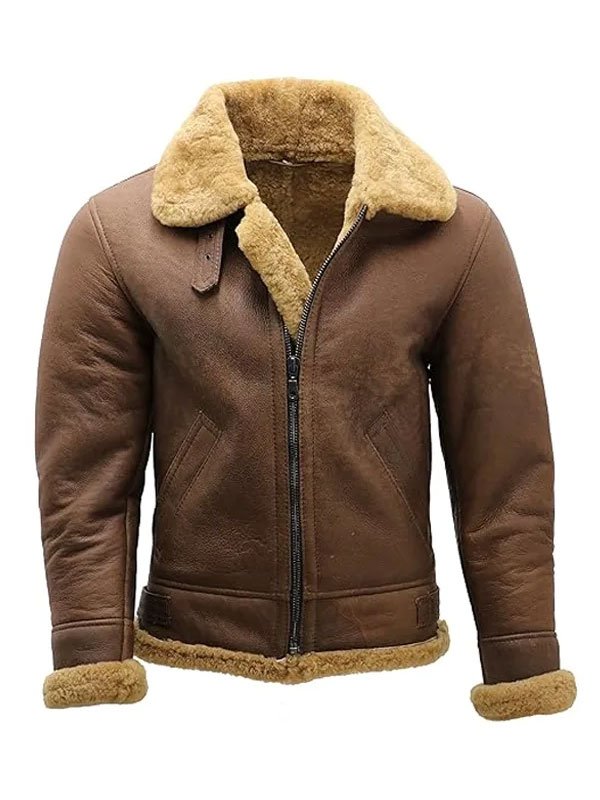 Men’s Brown B3 Shearling Leather Flying Aviator Jacket