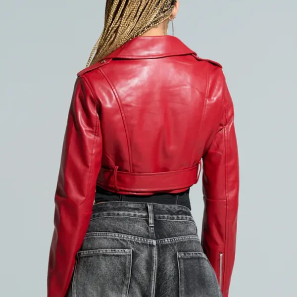 Essential Red Leather Cropped Biker Jacket For Women’s