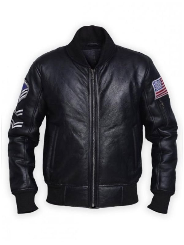 The American Flag Black Bomber Leather Jacket For Men’s