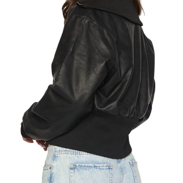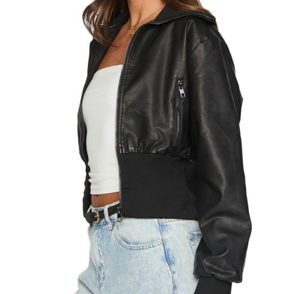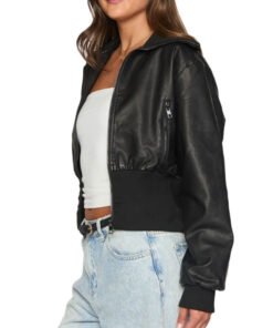 The Stylish Women’s Cropped Rib-Knitted Waist Leather Bomber Jacket is designed for women who love modern fashion with a bold edge. This jacket brings a fresh twist to the classic bomber style by featuring a cropped length and a rib-knit waist, creating a flattering silhouette that highlights your shape. Its stylish design makes it an excellent choice for casual wear, street style, and everyday outfits.